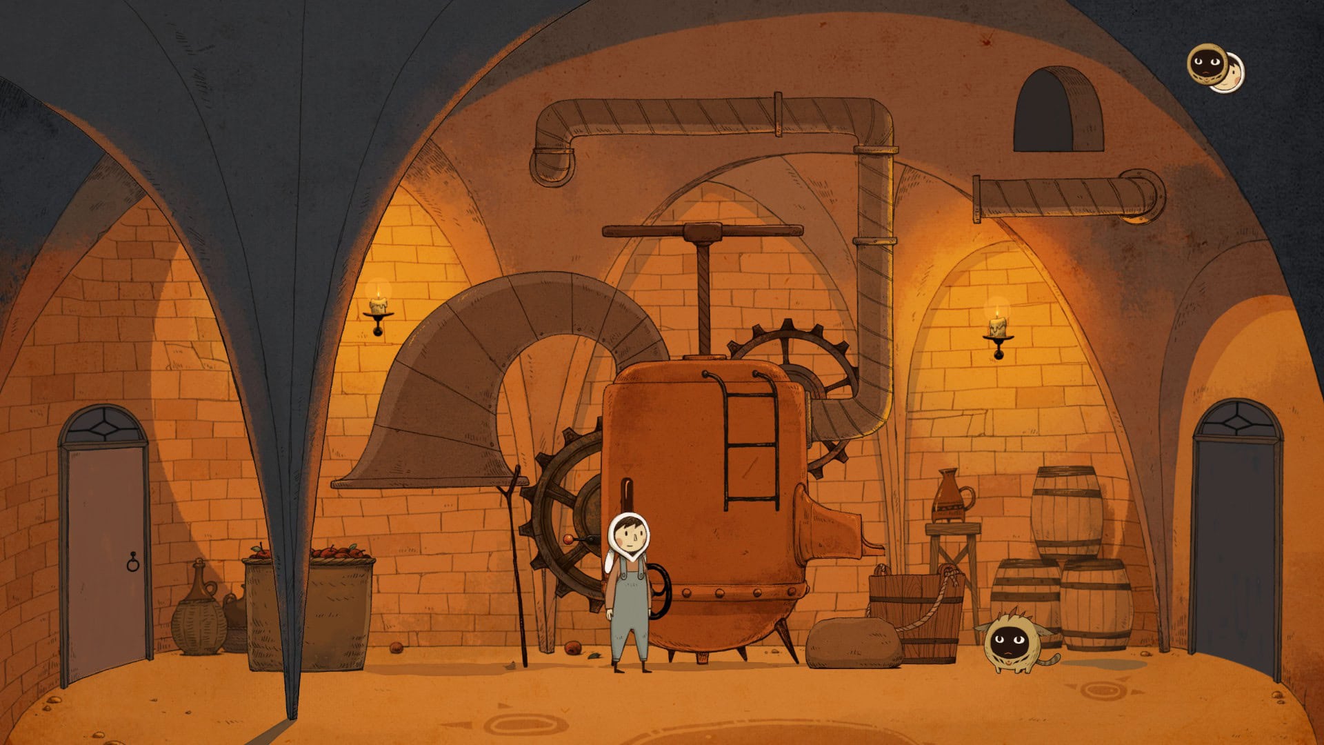 Chaque pièce de la tour constitue un puzzle autonome. Lorsque vous le résolvez, la porte de la pièce suivante se déverrouille, vous permettant de progresser davantage. Les puzzles sont dans la même veine que les autres aventures pointer-cliquer faisant des actions simples dans un certain ordre, poussant les plates-formes, appuyant sur les boutons et basculant entre le contrôle du garçon et de son ami félin.
